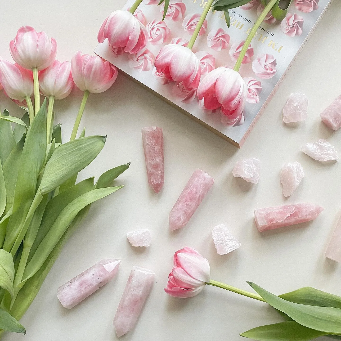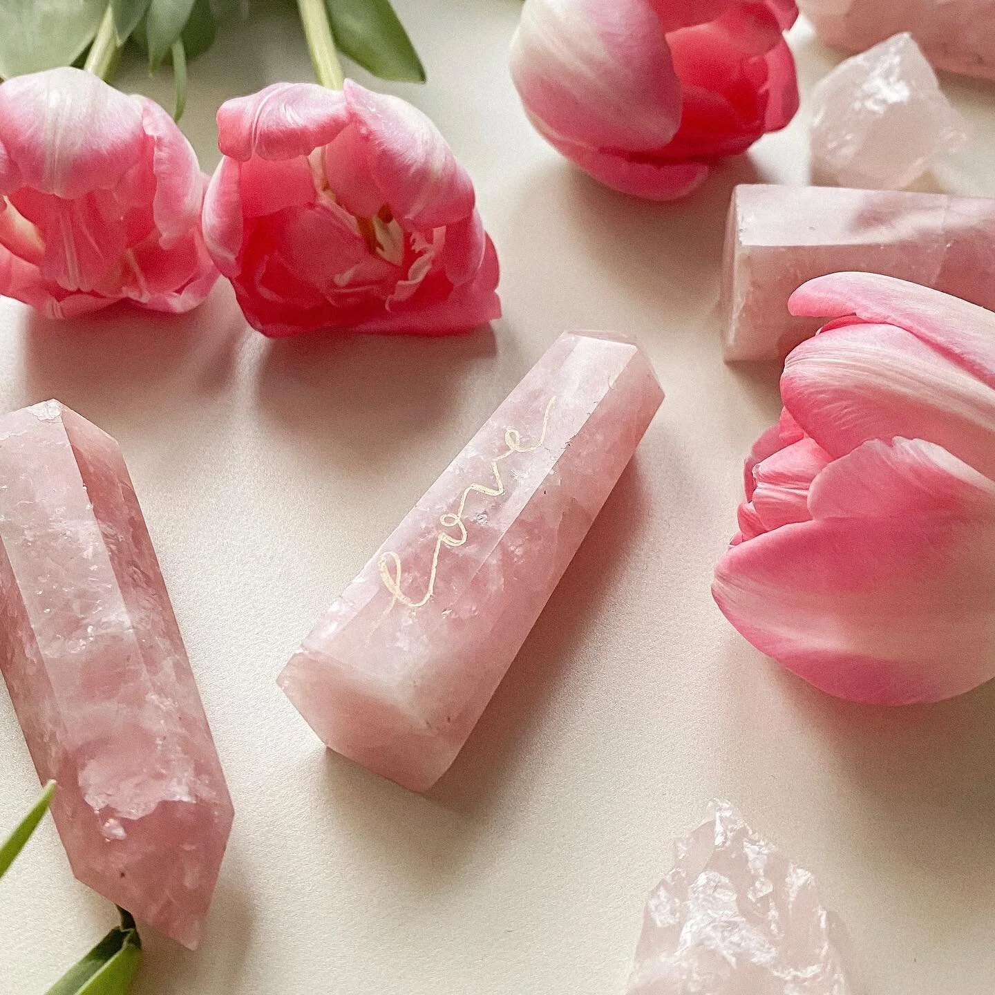 our signature madagascan rose quartz